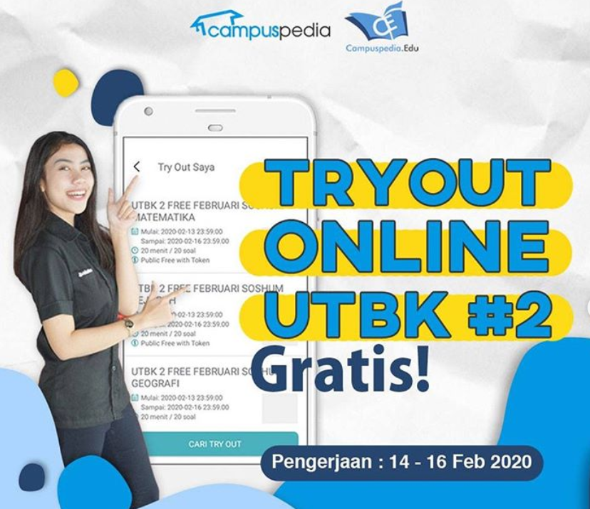 Banyak sekali lembaga atau platform yang menyediakan layanan tryout ini. Namun yang paling dekat dan terbaru adalah Tryout online Campuspedia Batch 2. Tryout ini akan dilaksanakan tanggal 14-16 Februari 2020, tepat saat akhir pekan. Jadi tidak akan mengganggu sekolahmu. Kelebihan dari tryout Campuspedia Batch 2 ini adalah: